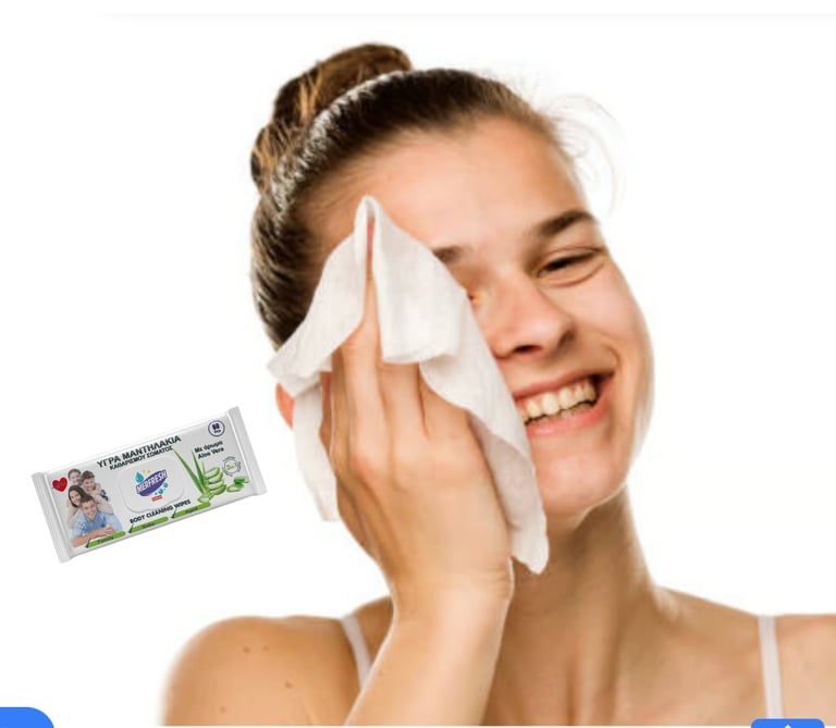 Μαντηλάκια Καθαρισμού Σώματος – Ειδικά σχεδιασμένα για καθημερινή φρεσκάδα και υγιεινή, καθαρίζουν απαλά την επιδερμίδα και προσφέρουν αίσθηση ανανέωσης.